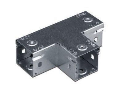 Ответвители – это аксессуары, облегчают построение кабельных трасс сложной геометрии. Они позволяют создавать ответвления кабельной трассы. Данный аксессуар (его также называют "тройник горизонтальный") имеет Т-образную форму и применяется для организации поворотов и ответвлений в горизонтальной плоскости. Его конструктив обеспечивает плавный поворот и предупреждает повреждение кабеля при прокладке. Закрытая конструкция аксессуара обеспечивает надежную защиту кабеля от влаги и попадания мусора. Исполнение – "сталь, оцинкованная по методу Сендзимира". Высота – 50 мм, ширина – 50 мм, внутренний радиус поворотов – 100 мм.