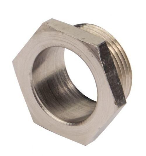 Втулка с резьбой М16х1,5 используется, чтобы не повредить провода или кабель при вводе в оборудование или выводе из него. Она имеет гладкую внутреннюю поверхность и фиксируется с помощью резьбового соединения или гайки (заказывается отдельно). Степень герметизации - IP 67. Материал - никелированная латунь.