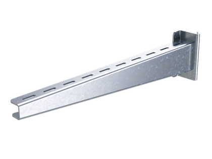 Монтажные элементы серии "B5 Combitech" совместимы с металлическими лотками и аксессуарами ДКС любой серии, а также с шинопроводами (как осветительными, так и магистральными). Элементы системы легко комбинируются друг с другом, что позволяет создавать конструкции любой сложности и строить даже проекты нестандартных размеров. При этом применяются соединения болтового типа - для крепления элементов не требуется использование сварки. Изделия могут выпускаться в различных исполнениях. Специальное исполнение "Горячий цинк" обеспечивает изделиям устойчивость к коррозии и длительный срок службы. Усиленная консоль предназначена для крепления к I-образному профилю. В комплект поставки уже включена соединительная пластина и крепежные элементы. Длина консоли - 400 мм, она расчитана на нагрузку 315 кг.