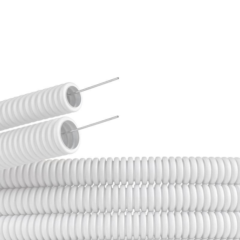 Труба гофрированная ПЛЛ гибкая d40мм с протяжкой безгалоген. (HF) ПВ-0 бел. (уп.20м) DKC 81840