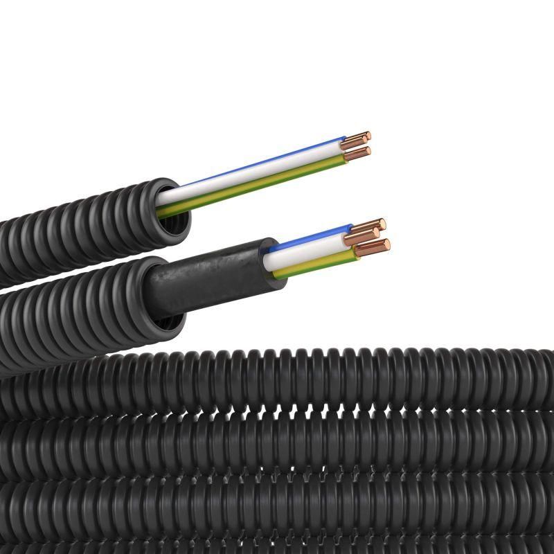 Труба гофрированная ПНД гибкая d16мм с проводом ПВ-1 (ПуВ) 2.5х3 РЭК ГОСТ+ черн. (уп.50м) DKC 7V71650