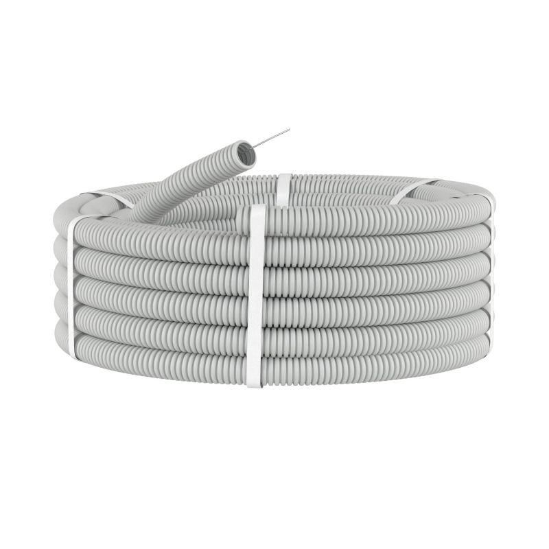 Труба ПВХ гофро тяж. c протяж. d16мм (уп.100м) ДКС 91516 используется для прокладки силовых и слаботочных линий, электрических, телефонных, компьютерных, телевизионных сетей. Изготовлена из ПВХ, серого цвета. Отличается необходимой гибкостью, прочностью и жесткостью, защищает проводку от механических повреждений, пыли, влаги, предохраняет от последствий короткого замыкания в сети. Устойчива к износу и старению. Требует защиты от воздействия ультрафиолетовых лучей.