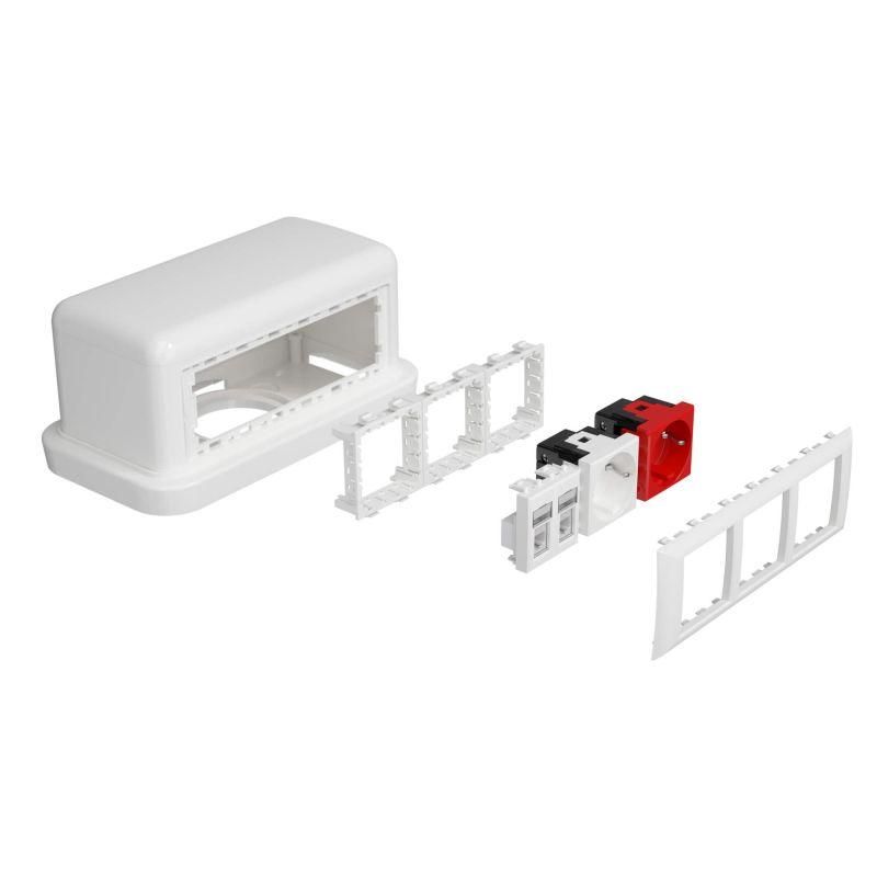 Напольная двухсторонняя башенка BUS. Назначение: организация рабочего места в открытом интерьере, под столами, трибунами и т. д. Характеристики: монтаж ЭУИ с 2 сторон, по 6 модулей; монтаж ЭУИ серий "Viva" и "45х45 мм" в соответствующих каркасах. Комплект поставки: основание ? 1 шт.; стойка ? 1 шт.; крышка ? 1 шт.; саморезы для монтажа стойки к основанию базы – 4 шт.; внутренняя центральная перегородка ? 1 шт.; рамка на 6 модулей ? 2 шт.; заглушка сплошная на 6 модулей (накладка для декора неиспользуемого проема башенки) ? 1 шт. Цвет белый