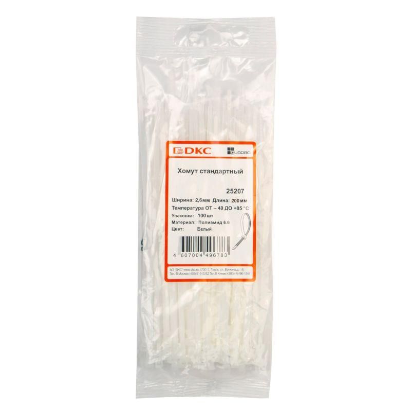 Хомут кабельный 2.6х200 полиамид бел. (уп.100шт) DKC 25207