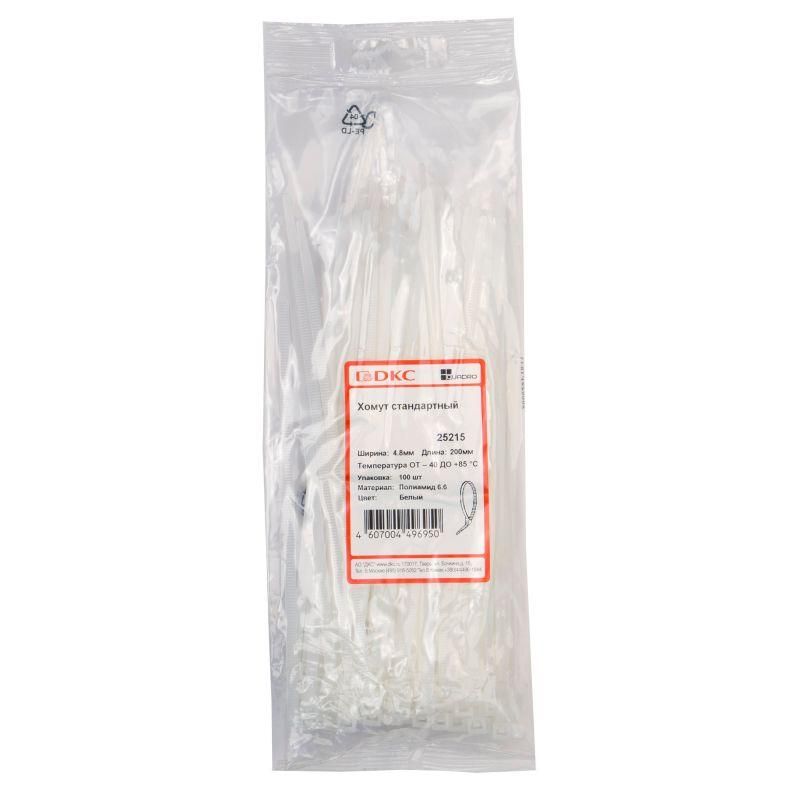 Хомут кабельный 4.8х200 полиамид бел. (уп.100шт) DKC 25215