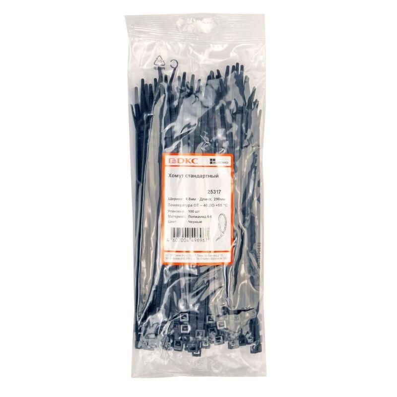Хомут кабельный 4.8х290 полиамид черн. (уп.100шт) DKC 25317