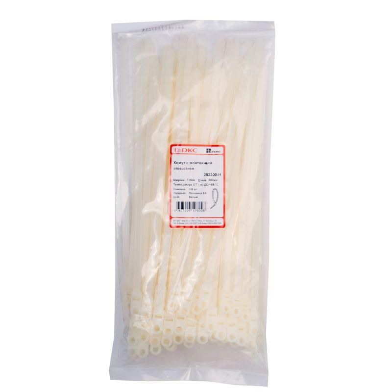 Хомут кабельный 7.8х300 полиамид бел. с монтаж. отв. (уп.100шт) DKC 252300-H