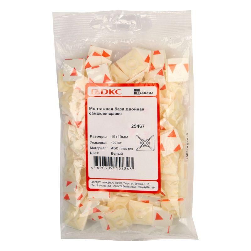 База монтажная самокл. для двух хомутов 19х19 бел. (уп.100шт) DKC 25467