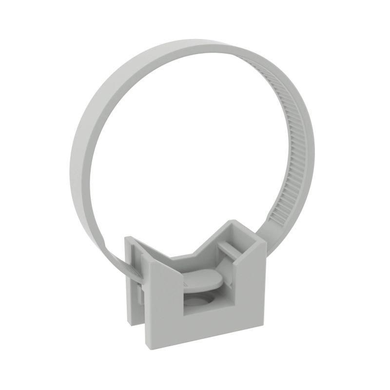 Держатель с хомутиком предназначен для крепления пластиковых и металлопластиковых труб, а также кабеля к поверхности стен, потолков, полов и перегородок. Диаметр - 25-63 мм. Материал: нейлон. Без содержания галогенов. Цвет серый RAL 7035. Элемент системы может эксплуатироваться при широком диапазоне температур: от –25°C до +60 °C.