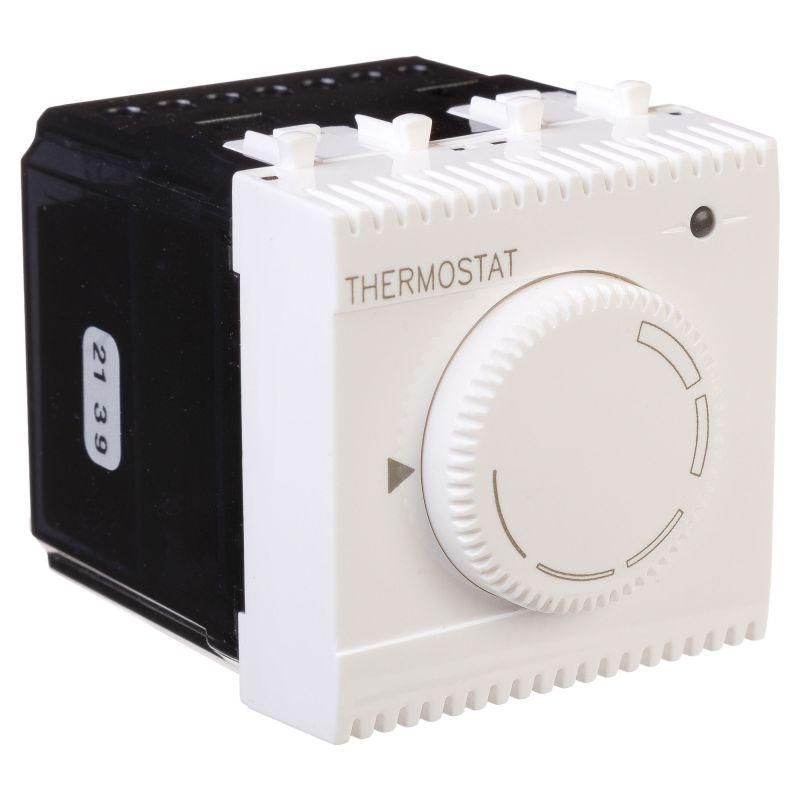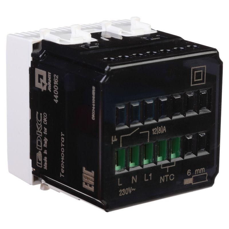 Термостат – устройство, предназначенное для регулировки температуры. Компания ДКС предлагает вашему вниманию термостат для теплых полов, применение которого позволяет устанавливать комфортную температуру пола. Двухмодульный термостат монтируется в настенный кабель канал. Номинальное напряжение – 230 В, номинальный ток – 5 А. Эта модель выполнена в цвете "Белое облако". Это сложный оттенок с нотками желтого и синего, сочетающийся с любым стилем и цветовой гаммой.