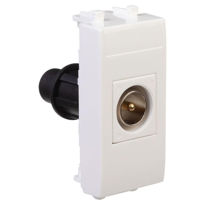 Розетка TV оконечная модульная. Назначение: для монтажа в системы "In-liner Front" и "In-liner Aero" при помощи рамок-суппортов и каркасов "Avanti" (код 4400912 и т.д.); подключения телевизионного кабеля. Характеристики: диапазон рабочих частот 4–2400 МГц; затухание