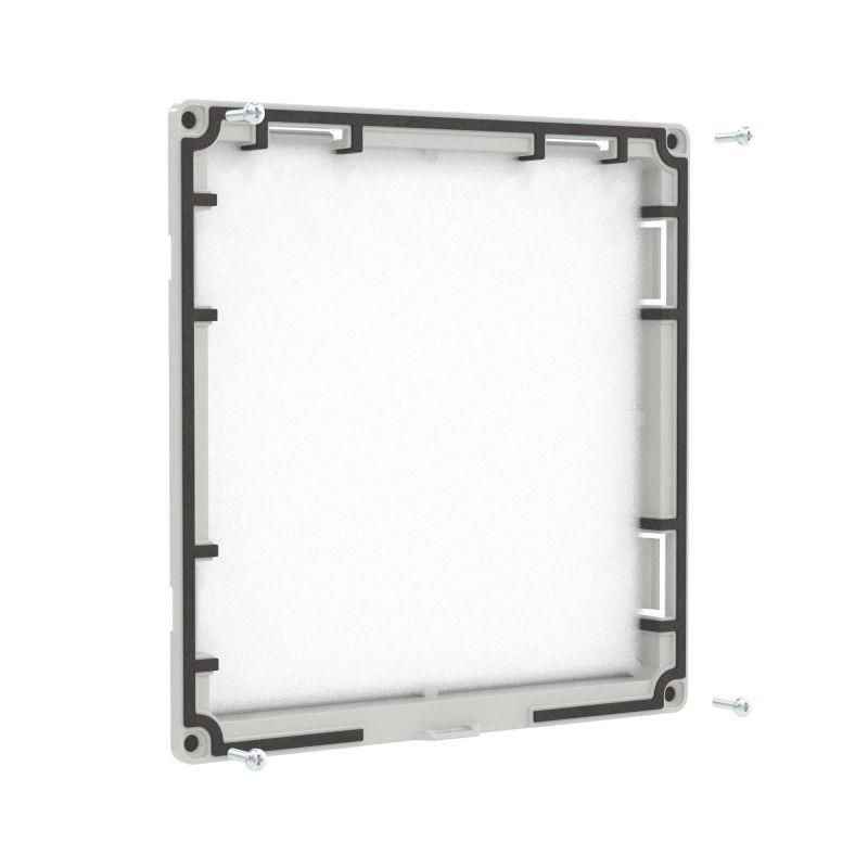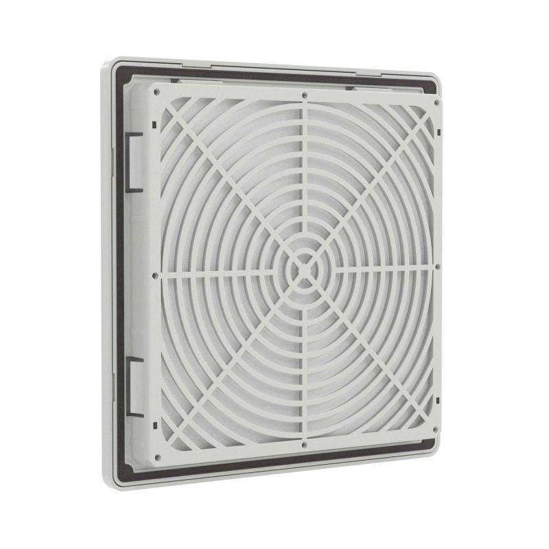 Вентиляционные решетки RF изготовлены в России. Они обладают высоким качеством и надежностью, могут применяться даже в тяжелых условиях эксплуатации. Изготовлены из устойчивого к УФ и не поддерживающего горение АБС–пластика и поликарбоната. Возможна установка на улице без навеса. Степень защиты IP54, опционально повышение до IP56. Применяются для создания пассивной вентиляции или в сочетании с настенными или потолочными вентиляторами. Монтаж осуществляется без использования инструмента при помощи защелок (опционально можно зафиксировать винтами, например, при вибрационных нагрузках). В комплекте - воздушный фильтр с возможностью быстрой замены без инструмента. Внешние размеры 205х205 мм, размер монтажного выреза 177,5х177,5 мм. Цвет - светло-серый, RAL 7035.