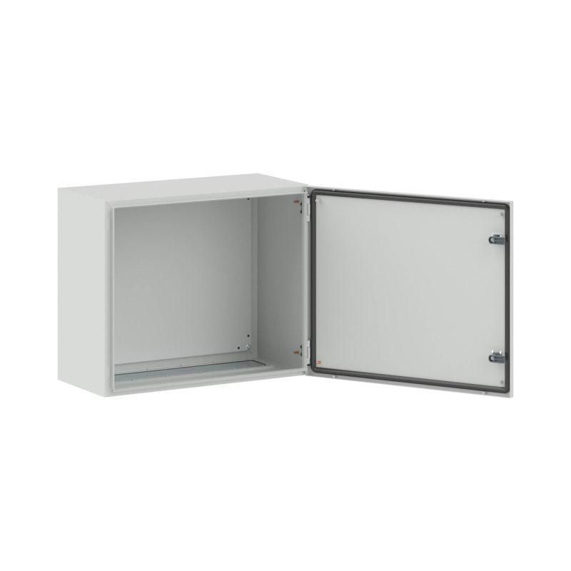 "RAM block" – система универсальных металлических корпусов – сварных и сборных, а также стоек управления. Сборные металлические шкафы СE предназначены для защиты от внешнего воздействия оборудования в системах автоматизации и распределения электроэнергии. Корпуса CE имеют всего 4 сварных шва, что повышает прочность конструкции. Корпуса изготавливаются из листовой стали толщиной 1,5 мм с порошковой полиэфирной окраской. Полиуретановый уплотнитель улучшает герметизацию (максимальная степень пыле- и влагозащиты - IP 65 - IP 66). В комплект поставки корпусов входят: быстросъемный фланец, монтажные аксессуары, монтажная плата. По умолчанию шкафы укомплектованы стандартным замком с личинкой под ключ с двойной бородкой, однако замок при необходимости может быть заменен. Сборные металлические шкафы CE соответствуют российским стандартам, они могут устанавливаться в сейсмоопасных зонах и имеют необходимые сертификаты. Корпуса со сплошной дверью применяются в системах автоматизации. Уровень ударопрочности корпусов - IK 10. Габариты навесного шкафа: 500х600х300 мм.