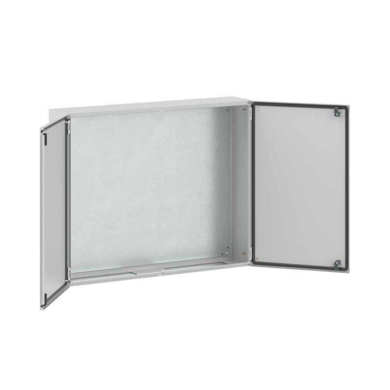 "RAM block" – система универсальных металлических корпусов – сварных и сборных, а также стоек управления. Сборные металлические шкафы СE предназначены для защиты от внешнего воздействия оборудования в системах автоматизации и распределения электроэнергии. Корпуса CE имеют всего 4 сварных шва, что повышает прочность конструкции. Корпуса изготавливаются из листовой стали толщиной 1,5 мм с порошковой полиэфирной окраской. Полиуретановый уплотнитель улучшает герметизацию (максимальная степень пыле- и влагозащиты - IP 65 - IP 66). В комплект поставки корпусов входят: быстросъемный фланец, монтажные аксессуары, монтажная плата. По умолчанию шкафы укомплектованы стандартным замком с личинкой под ключ с двойной бородкой, однако замок при необходимости может быть заменен. Сборные металлические шкафы CE соответствуют российским стандартам, они могут устанавливаться в сейсмоопасных зонах и имеют необходимые сертификаты. Корпуса с двойной дверью применяются в системах автоматизации технологических процессов. Уровень ударопрочности корпусов - IK 10. Габариты навесного шкафа: 800х1000х200 мм.