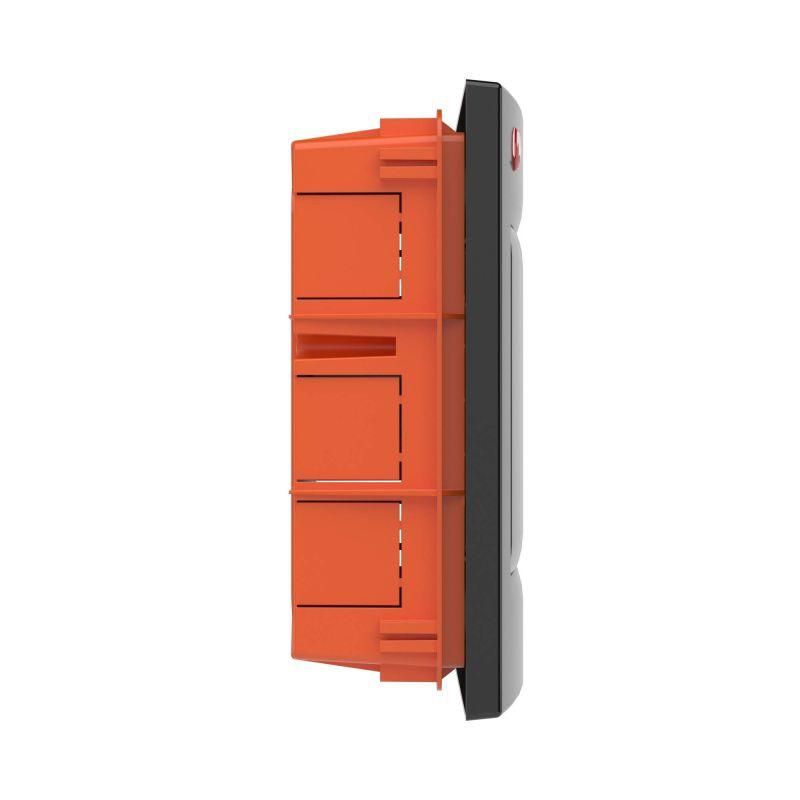 Встраиваемый распределительный щиток ДКС предназначен для монтажа в жилых и административных помещениях для установки автоматических выключателей любых производителей: таймеров, устройств защитного отключения и управления освещением и т.д. Щиток имеет оцинкованную DIN-рейку и суппорт, заглушки для пустых модулей, сборочные винты и заглушки для них, самоклеящуюся этикетку для маркировки цепей. Преперфорированные отверстия и насечки на задней стенке обеспечивают точное соединение с пластиковыми трубами и обеспечивают легкий монтаж. Дверца выполнена из затемненного полупрозрачного пластика. Специальная конструкция петель дает возможность открывать дверцу более чем на 180°. Степень пыле- и влагозащиты IP 41. Количество модулей - 12. Параметры щитка: ширина - 333 мм, высота - 275 мм, глубина встраиваемой части - 72 мм. Материал - термостойкий и ударопрочный пластик. Цвет - черный.