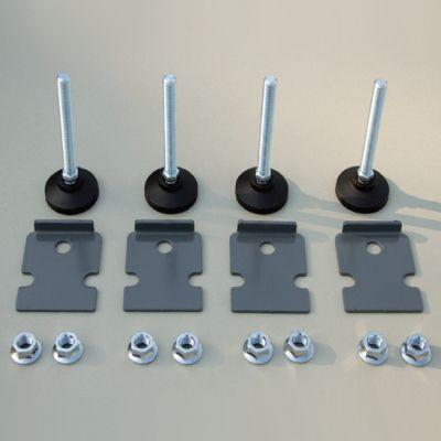 Регулируемые ножки предназначены для компенсации неровностей пола при установке 19" IT-корпусов ДКС серии CQE. Диапазон регулирования от 20 до 100 мм. Полная высота ножки 100 мм. Максимальная статическая нагрузка на одну ножку - 300 кг. Присоединительная резьба М12. Ножки поставляются в комплекте из 4 штук вместе с необходимыми монтажными аксессуарами. Они изготовлены из стального прутка с нарезанной резьбой М12 и пластиковых опор. Ножки вворачиваются в гайки, ввареные в основание шкафа и фиксируются контргайкой, входящей в комплект.