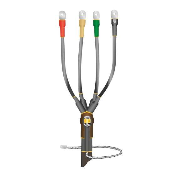 МУФТА КОНЦЕВАЯ ТЕРМОУСАЖИВАЕМАЯ МАРКИ 1ПКВ(Н)ТпбН-4х(35-50) С НАКОНЕЧНИКАМИ БОЛТОВЫМИ ВНУТРЕННЕЙ И НАРУЖНОЙ УСТАНОВКИ предназначена для оконцевания 4-х жильных силовых кабелей сечением 35, 50 кв.мм с пластмассовой изоляцией с броней на напряжение до 1 кВ включительно. Универсальна в использовании. Может быть установлена как внутри помещений всех категорий влажности, так и на открытом воздухе при температуре окружающей среды от -50град.С до +50град.С и относительной влажности до 98%. Соответствует требованиям ГОСТ 13781.0-86 и ТУ Нева-Транс 3599-012-31930690-2016. Прошла необходимый комплекс независимых испытаний, на основании которых выдан сертификат соответствия Госстандарта России. Монтируется на разделке кабеля методом термоусаживания основных деталей из модифицированного полимера, входящих в комплект муфты, с помощью горелки или высокотемпературного фена. Предусматривает крепление провода заземления к бронелентам кабеля с помощью пружины постоянного давления и терки. Имеет высокую эксплуатационную надежность и экологическую безопасность. Устойчива к ультрафиолетовому излучению и воздействию атмосферных осадков.