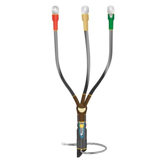 МУФТА КОНЦЕВАЯ ТЕРМОУСАЖИВАЕМАЯ МАРКИ 10КВТпН-3х(35-50) С НАКОНЕЧНИКАМИ БОЛТОВЫМИ ВНУТРЕННЕЙ УСТАНОВКИ предназначена для оконцевания 3-х жильных силовых кабелей сечением 35, 50 кв.мм с бумажной пропитанной изоляцией на напряжение до 10 кВ включительно. Устанавливается внутри помещений всех категорий влажности. Соответствует требованиям ГОСТ 13781.0-86 и ТУ Нева-Транс 3599-012-31930690-2016. Прошла необходимый комплекс независимых испытаний, на основании которых выдан сертификат соответствия Госстандарта России. Монтируется на разделке кабеля методом термоусаживания основных деталей из модифицированного полимера, входящих в комплект муфты, с помощью горелки или высокотемпературного фена. Обеспечивает выравнивание напряженности электрического поля и герметизацию корешка разделки кабеля за счет применения специального герметика-регулятора. Предусматривает крепление провода заземления к металлической оболочке с помощью пружины постоянного давления и терки, что позволяет исключить возможность повреждения бумажной изоляции в случае применения припоя “А”, а к бронелентам методом пайки. Имеет высокую эксплуатационную надежность и экологическую безопасность.