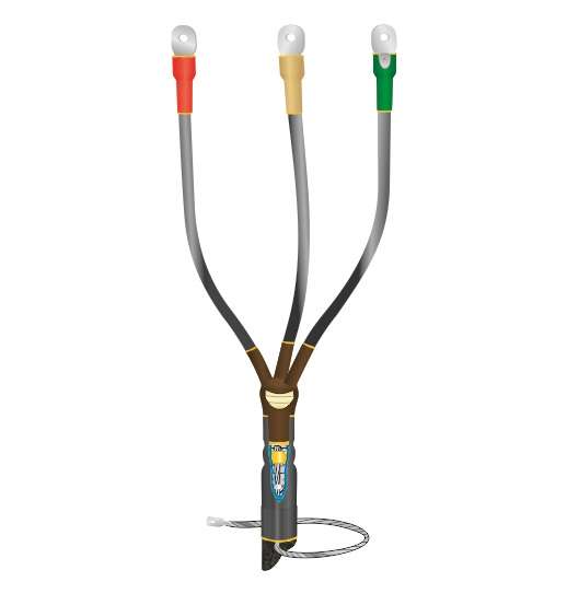 МУФТА КОНЦЕВАЯ ТЕРМОУСАЖИВАЕМАЯ МАРКИ 10КВТпН-3х(70-120) С НАКОНЕЧНИКАМИ БОЛТОВЫМИ ВНУТРЕННЕЙ УСТАНОВКИ предназначена для оконцевания 3-х жильных силовых кабелей сечением 70, 95, 120 кв.мм с бумажной пропитанной изоляцией на напряжение до 10 кВ включительно. Устанавливается внутри помещений всех категорий влажности. Соответствует требованиям ГОСТ 13781.0-86 и ТУ Нева-Транс 3599-012-31930690-2016. Прошла необходимый комплекс независимых испытаний, на основании которых выдан сертификат соответствия Госстандарта России. Монтируется на разделке кабеля методом термоусаживания основных деталей из модифицированного полимера, входящих в комплект муфты, с помощью горелки или высокотемпературного фена. Обеспечивает выравнивание напряженности электрического поля и герметизацию корешка разделки кабеля за счет применения специального герметика-регулятора. Предусматривает крепление провода заземления к металлической оболочке с помощью пружины постоянного давления и терки, что позволяет исключить возможность повреждения бумажной изоляции в случае применения припоя “А”, а к бронелентам методом пайки. Имеет высокую эксплуатационную надежность и экологическую безопасность.