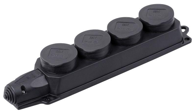 Колодка удлинителя 4-м IP44 Омега РБ34-1-0м с защ. крышкой каучук IEK PKR64-016-2-K02