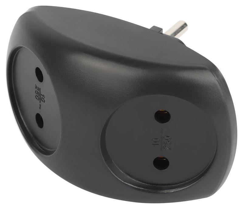 Разветвитель электрический SPx-2-B на 2 розетки без заземл. 10А черн. Эра Б0059720