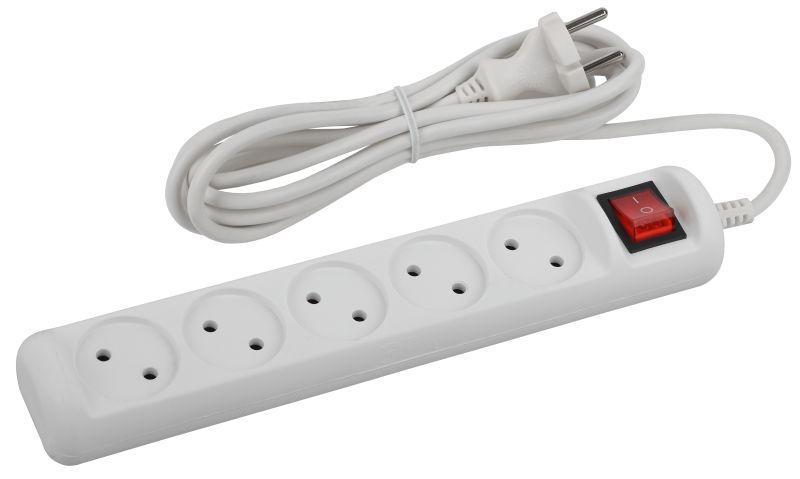 Удлинитель 5х1.5м без заземл. 10А IP20 U-5s-1.5m-2х1 ПВС 2х1 с выкл. Эра Б0044055
