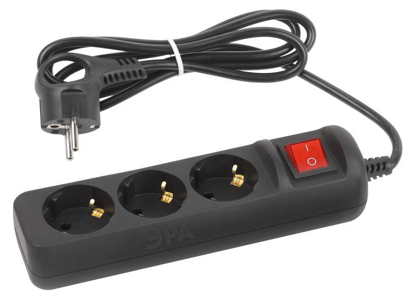 Удлинитель электрический UX-3es-1.5m-B с заземл. с выключателем 3 розетки 1.5м ПВС 3х0.75кв.мм черн. Эра Б0057727