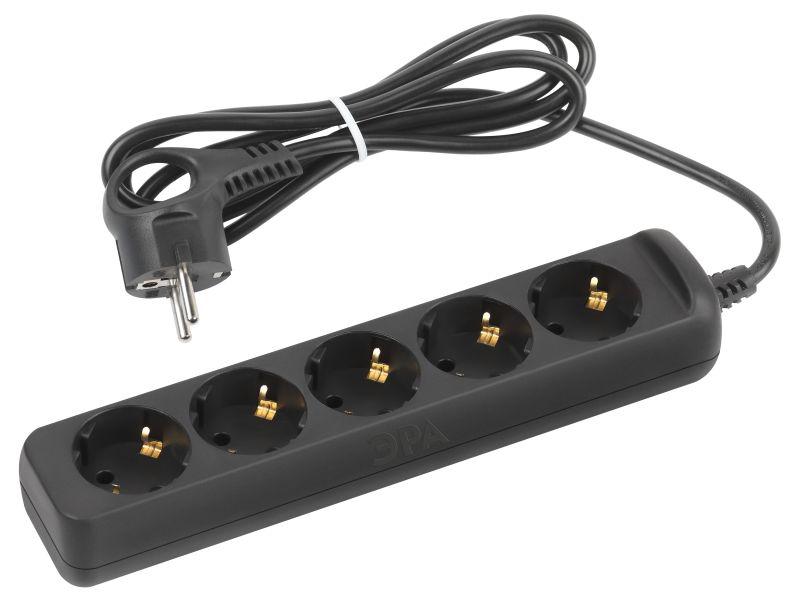 Удлинитель электрический UX-5e-1.5m-B с заземлением 5 розеток 1.5м ПВС 3х0.75кв.мм 10А черн. Эра Б0057724
