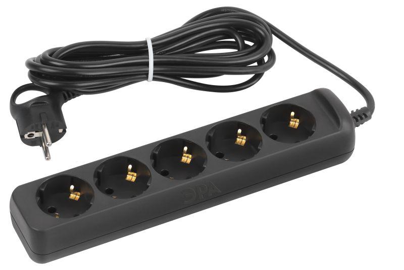 Удлинитель электрический UX-5e-5m-B с заземлением 5 розеток 5м ПВС 3х0.75мм2 10А черн. Эра Б0057726