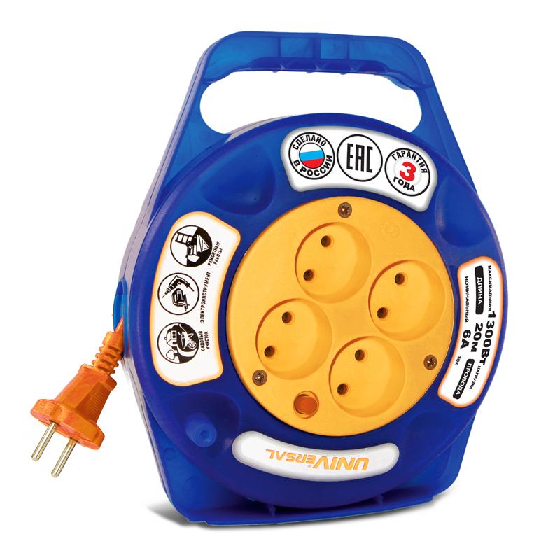 Удлинитель в закрыт. корпусе 4х20м без заземл. 6А IP20 У6-015 ПВС 2х0.75 термозащита защ. шторки UNIVersal 9633902