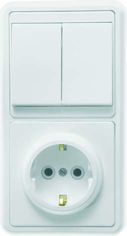 Блок БКВР-032 Бэлла (2-кл. выкл. + розетка с заземл.) бел. Кунцево 5831