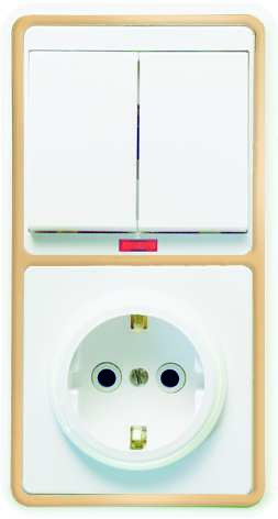 Блок БКВР-055 Бэлла (2-кл. выкл. с инд. + розетка с заземл.) зол. Кунцево 5834