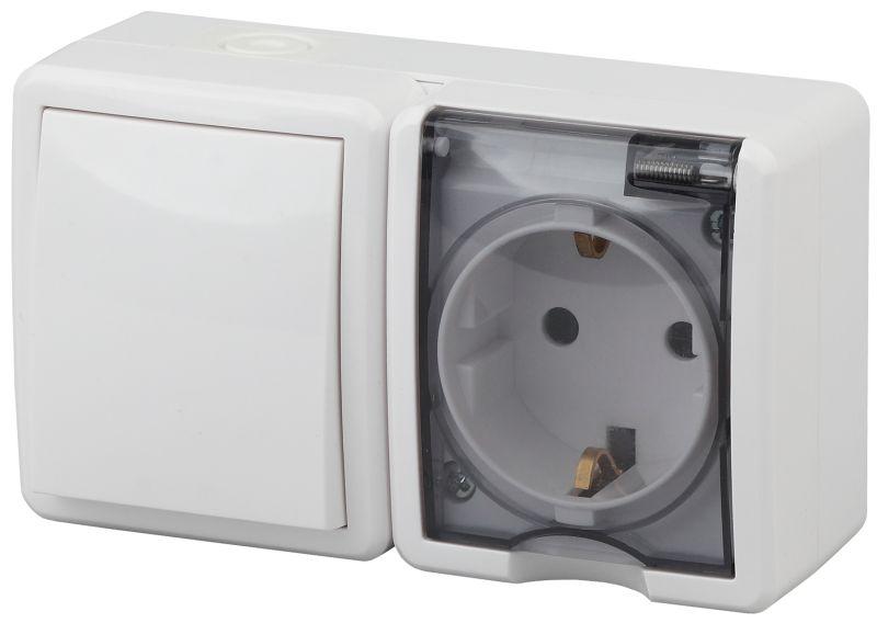 Блок розетка с выключателем влагозащищённый IP54 серии Эра Эксперт открытой установки цвет белый 11-7401-01. Номинальные характеристики 16А 250В . Устройство выполнено из качественного поликарбоната, оснащёно уникальными винтовыми клеммами ЭКСПЕРТ для максимально качественного зажима кабеля в механизме.