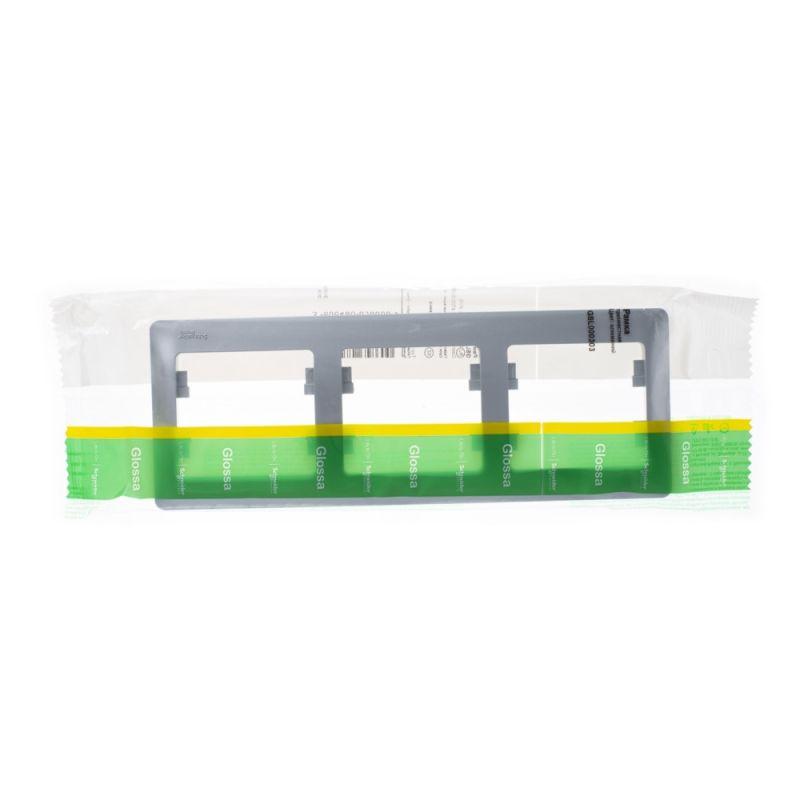 Рамка Glossa (цвет алюминий) трёхместная. - Устанавливается в вертикальном положении. - Выполнена из материала PС+ASA, стойкого к УФ-излучению и появлению царапин. - Позволяет гармонично вписать электроустановочное изделие в интерьер помещения.