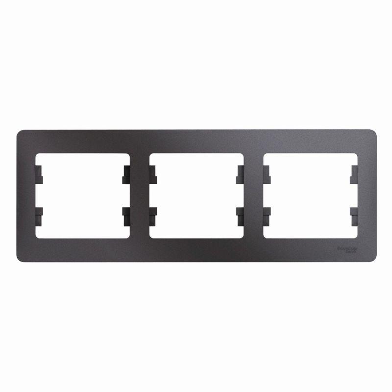 Рамка Glossa (цвет графит) трёхместная. - Устанавливается в горизонтальном положении. - Выполнена из материала PС+ASA, стойкого к УФ-излучению и появлению царапин. - Позволяет гармонично вписать электроустановочное изделие в интерьер помещения.