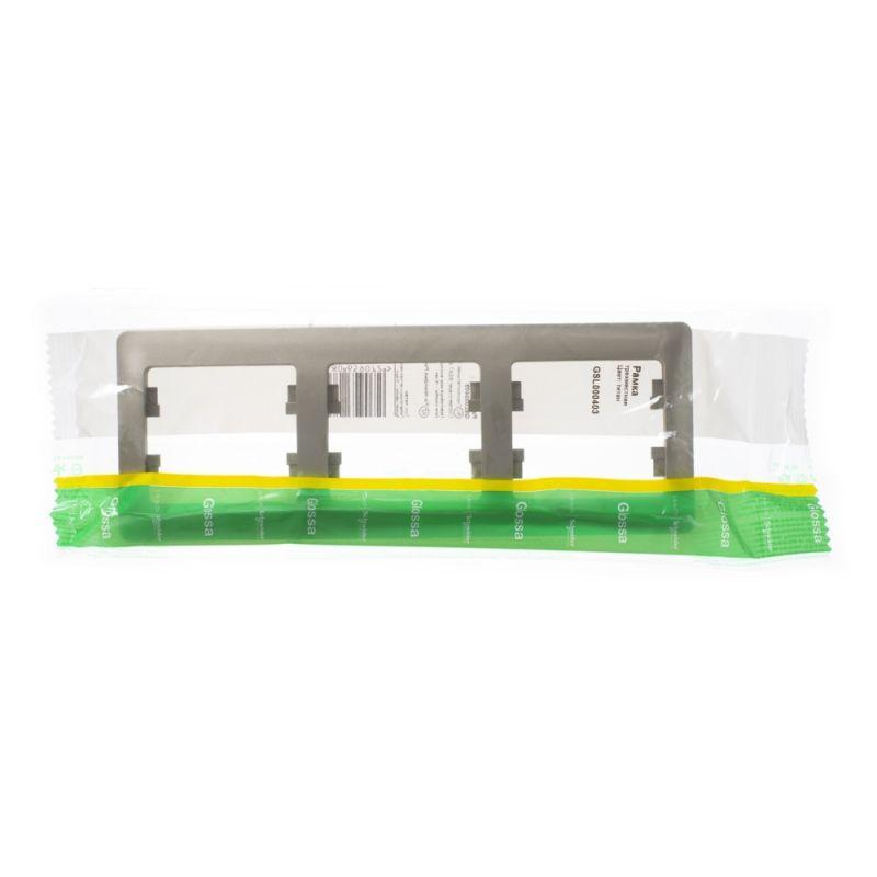 Рамка Glossa (цвет титан) трёхместная. - Устанавливается в вертикальном положении. - Выполнена из материала PС+ASA, стойкого к УФ-излучению и появлению царапин. - Позволяет гармонично вписать электроустановочное изделие в интерьер помещения.