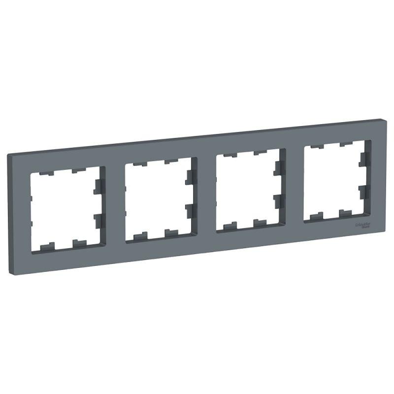 Рамка AtlasDesign (цвет грифель) четырёхместная. - Устанавливается в вертикальном и горизонтальном положениях. - Лицевые детали из качественного ABS-пластика, устойчивого к царапинам и УФ-излучению. - Позволяет гармонично вписать электроустановочное изделие в интерьер помещения.