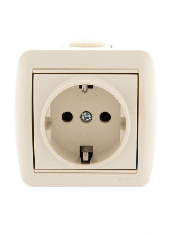 Розетка 1-м ОП Nata 16А IP20 с заземл. керамика крем. LEZARD 710-0300-122