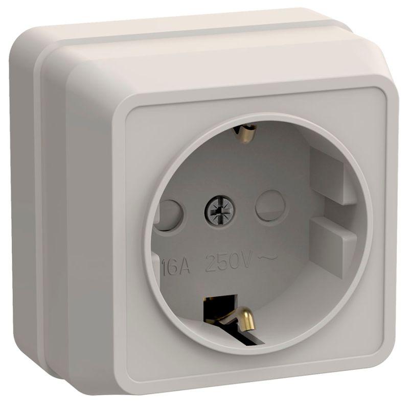 Розетка 1-м ОП Октава РСш20-3-ОКм 16А IP20 с заземл. защ. шторки крем. IEK ERO14-K33-16-DC