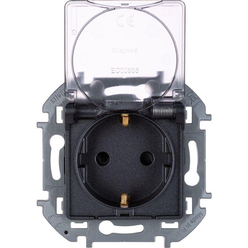 Розетка 1-м СП Inspiria 16А IP44 250В 2P+E защ. шторки с крышкой немецк. стандарт механизм антрацит Leg 673743