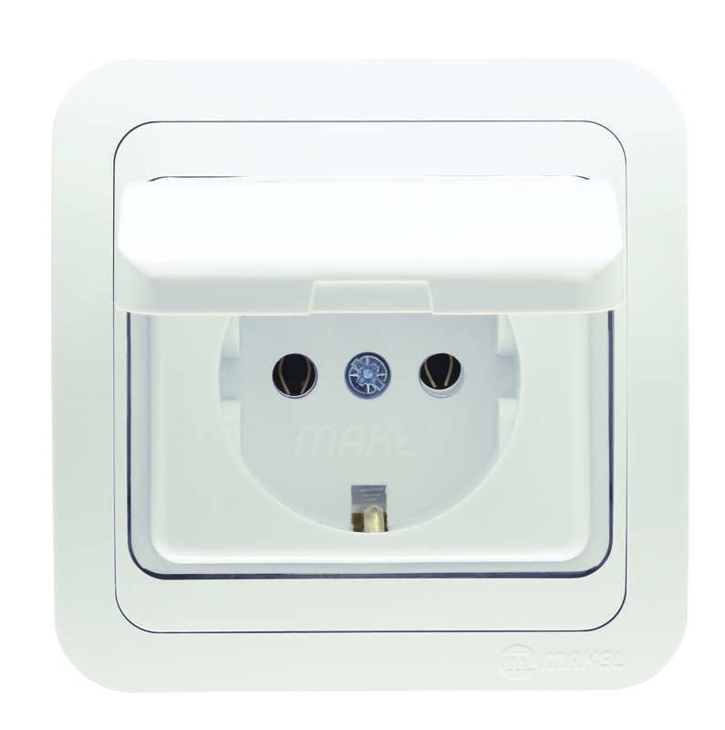 Розетка 1-м СП Mimoza 16А IP20 с крышкой керамика бел./бел. Makel 12009