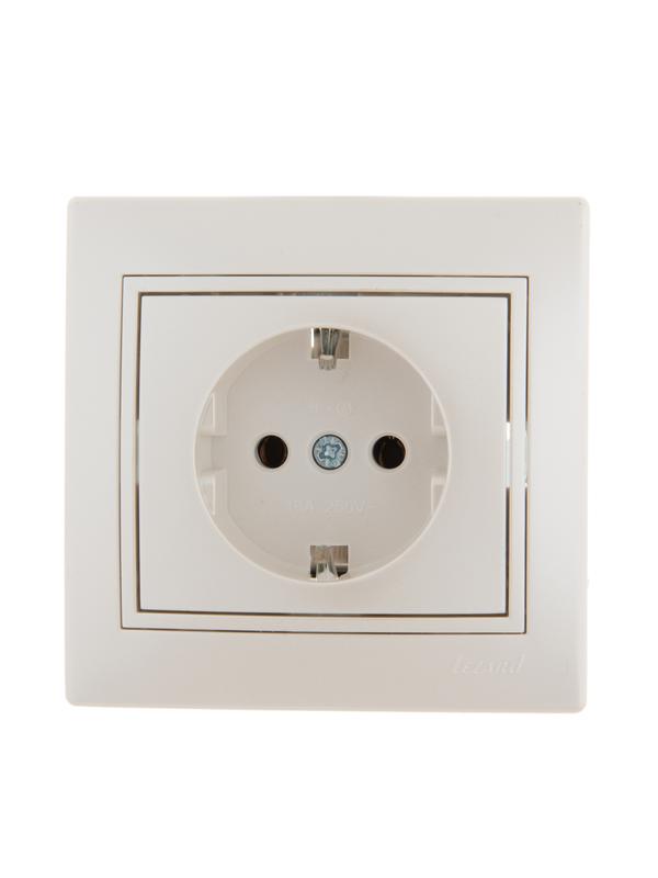 Розетка 1-м СП Mira 16А IP20 с заземл. со вставкой керамика жемчуж./бел. перламутр. LEZARD 701-3030-122