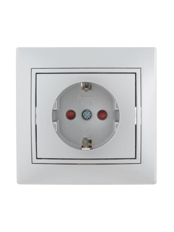 Розетка 1-м СП Mira 16А IP20 с заземл. защ. шторки со вставкой керамика сер. метал. LEZARD 701-1010-124