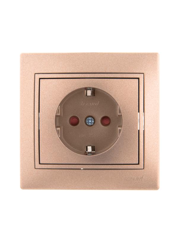Розетка 1-м СП Mira 16А IP20 с заземл. защ. шторки со вставкой керамика свет. корич. перламутр. LEZARD 701-3131-124