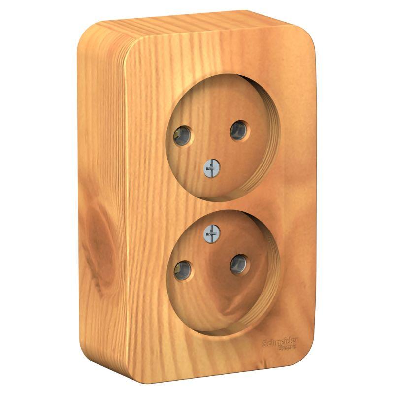 Розетка BLANCA (ясень, открытой установки) двухместная, без шторок и заземления, с изолирующей пластиной предназначена для сетей до 250В, на ток до 16А. Двухместная розетка позволяет подключить два устройства в одном месте. Изделия цвета Ясень обладают уникальным рисунком, напоминающим древесный сруб. Она изготовлена из ABS-пластика, проста в установке и удобна в применении.