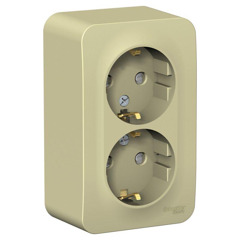 Розетка BLANCA (открытой установки, цвет бежевый) двухместная с заземлением и шторками, с изолирующей пластиной подходит для сетей 250 В, на ток 16 А. - Заземляющий контакт обеспечивает дополнительную защиту от удара электрическим током. При наличии заземления электрический потенциал уходит в землю, защищая человека. -Корпус изделия выполнен из ABS-пластика.