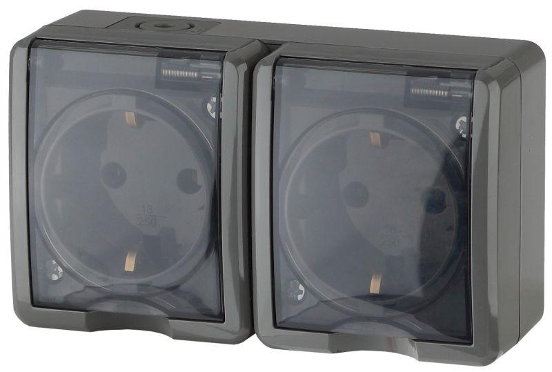 Розетка 2-м ОП Эра Эксперт 11-2404-03 16А IP54 16AX 250В 2х2P+E защ. шторки сер. Эра Б0020719