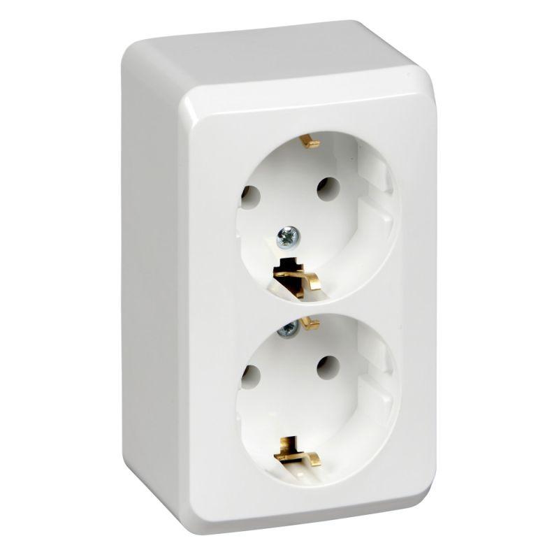 Розетка ЭТЮД (белый, открытой установки) двухместная с заземлением, без шторок предназначена для применения в сетях до 250В, на ток до 16А. Двухместная розетка позволяет подключить два устройства в одном месте. Заземление обеспечивает безопасность при косвенном прикосновении. Она проста в установке и удобна в применении. Сделано в России.
