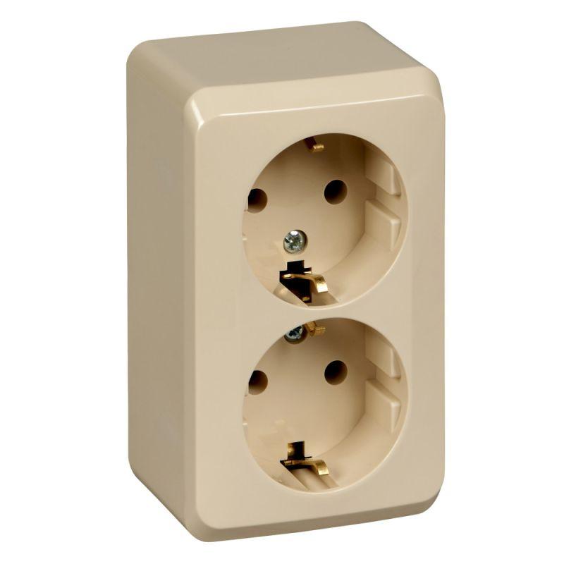 Розетка 2-м ОП Этюд 16А IP20 250В с заземл. без защ. шторок крем. SE PA16-007K