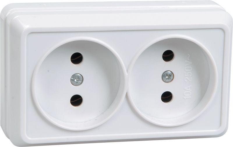 Розетка 2-м ОП Октава 10А IP20 без заземл. бел. IEK ERO20-K01-10-DC